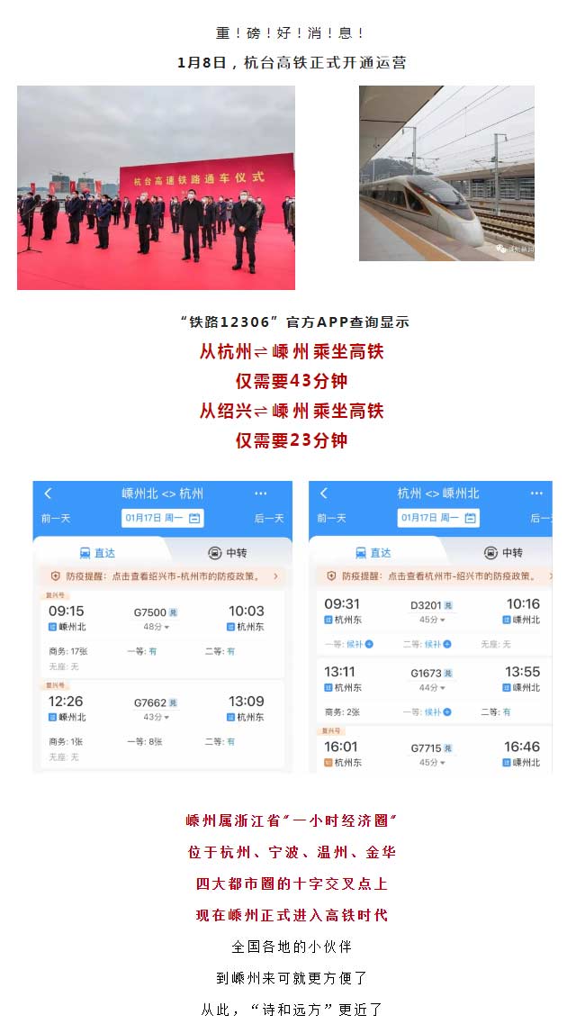 杭台高铁正式通车,嵊州跨入高铁新时代!快来,驶向诗和远方的高铁即将发车!